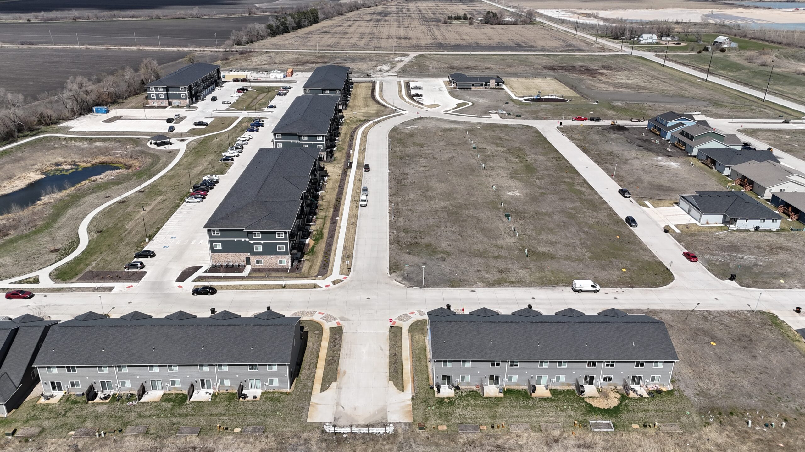 On what was once a cornfield lies Bluestem Commons, a new development in the Northeast area of Fremont, Nebraska. Lamp Rynearson’s client, Hoppe Development, identified this growing community as the perfect location for their mixed-use development plan and hired the Lamp Rynearson team to transform this undeveloped land into their diverse dream.